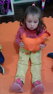 Após todas as surpresas a Galinha Ruiva merecia um carinho das crianças